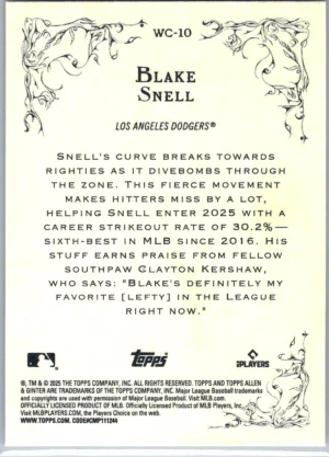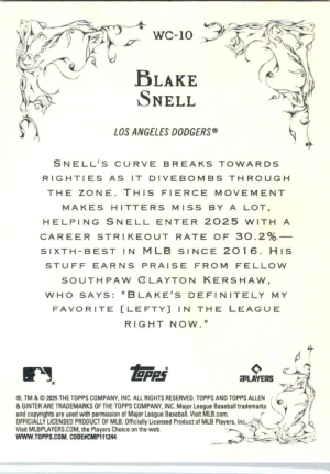 2025 Topps Allen & Ginter #WC-10 Blake Snell Wicked Curves