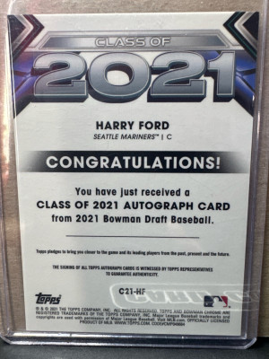 2021 Bowman Draft #C21-HF Harry Ford Class Of 2021 Autographs #/250