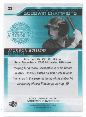 2023 Upper Deck Goodwin Champions Turquoise Parallel #23 Jackson Holliday RC