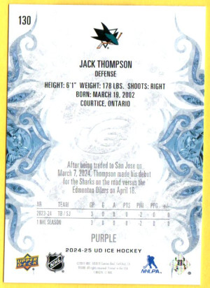 2024-25 Upper Deck Clear Cut Jack Thompson Rookie Autograph San Jose Sharks