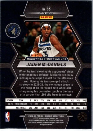 2022-23 Panini Mosaic #58 Jaden McDaniels Mosaic