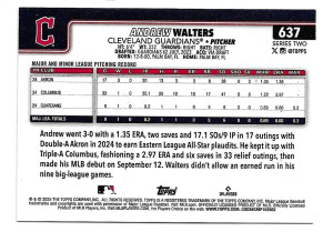2025 Topps Sandglitter #637 Andrew Walters (RC) - Cleveland Guardians