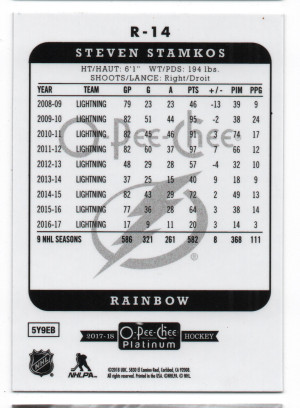 2017-18 O-Pee-Chee Platinum Retro Rainbow Parallel #R-14 Steven Stamkos