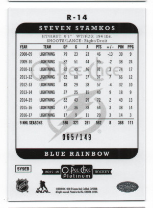 2017-18 O-Pee-Chee Platinum Retro Blue Rainbow Parallel #R-14 Steven Stamkos /149