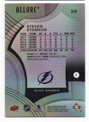 2021-22 Upper Deck Allure Black Rainbow Parallel #39 Steven Stamkos