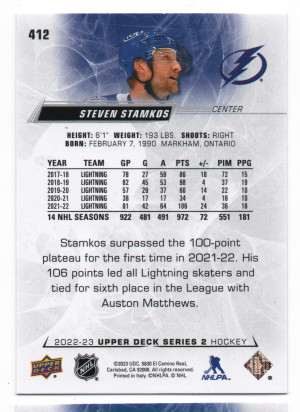 2022-23 Upper Deck ePack Speckled Rainbow Foil Parallel #412 Steven Stamkos