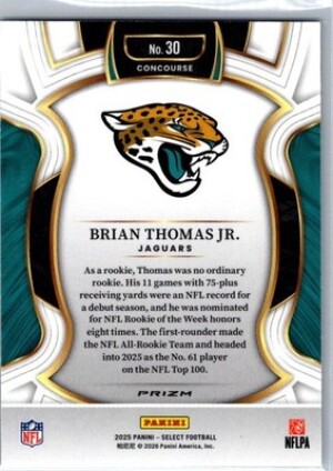 2025 Panini Select #30 Brian Thomas Jr. Silver Prizm