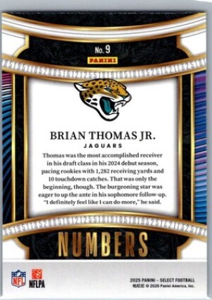 2025 Panini Select #9 Brian Thomas Jr. Select Numbers