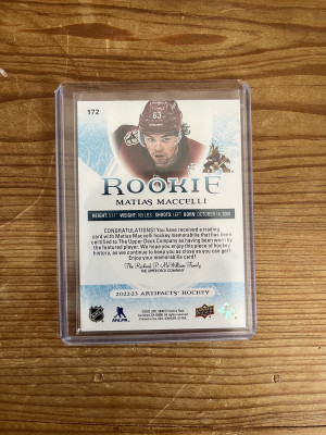 22-23 Artifacts Matias Maccelli dual rookie jersey relic /599