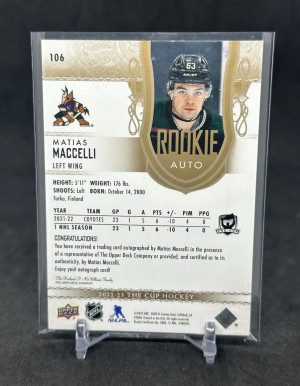 Matias Maccelli 2022-23 Upper Deck The Cup Rookie Auto Gold /36 #106