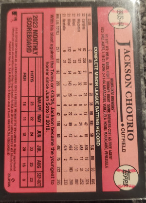 2024 Topps 1989 Anniversary Jackson Chourio Rookie #89US-44 Brewers RC