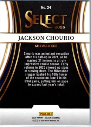 2025 Panini Select #7 Jackson Chourio Select Numbers