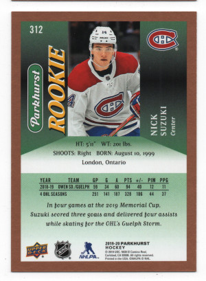 2019-20 Upper Deck Parkhurst ePack Bronze Parallel #312 Nick Suzuki RC