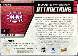 Nick Suzuki 2019-20 Premier Rookie Attractions RPA 09/49
