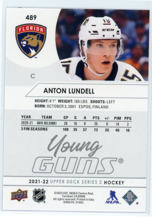2021-22 Upper Deck 489 Anton Lundell Young Guns