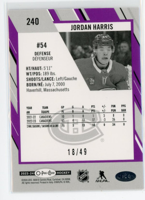 2023-24 O-Pee-Chee #240 Jordan Harris Purple 18/49
