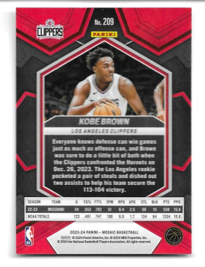 2023-24 Panini Mosaic #209 Kobe Brown (RC) - Los Angeles Clippers