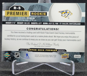 2015-16 Upper Deck Premier Rookies Jerseys #R5 Kevin Fiala