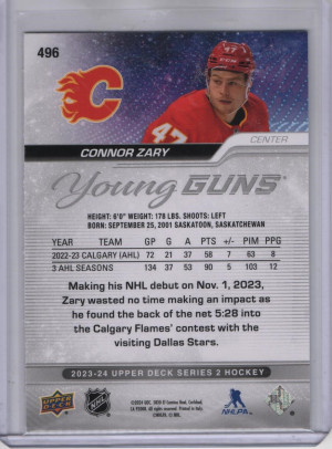 2023 UPPER DECK CONNOR ZARY OUTBURST SILVER YOUNG GUNS RC ROOKIE