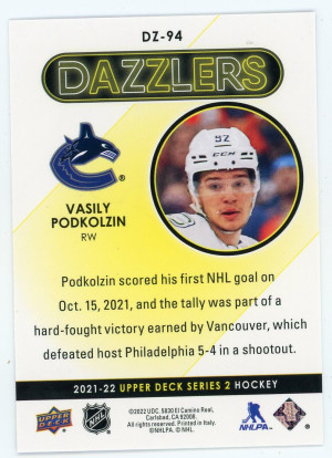 2021-22 Upper Deck Vasily Podkolzin Dazzlers Purple