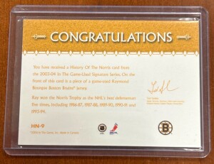 Ray Bourque 1/1 Jersey Card History Of The Norris