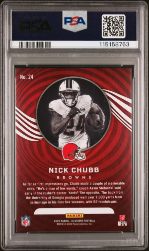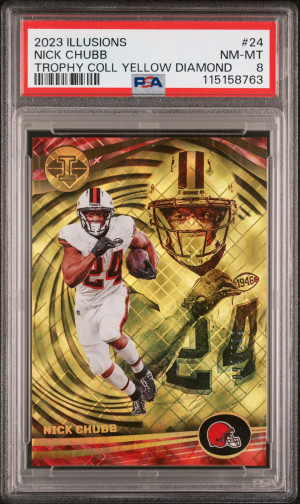 2023 Panini Illusions #24 Nick Chubb Trophy Coll Yellow Diamond PSA 8