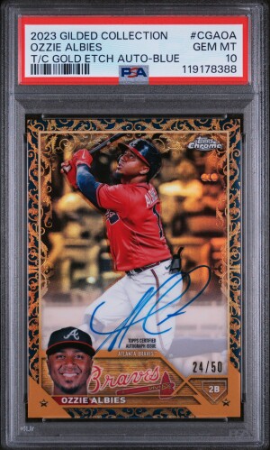 2023 Topps Gilded Collection Topps Chrome Gold Etch Autographs Ozzie Albies T/C Gold Etch Auto-Blue