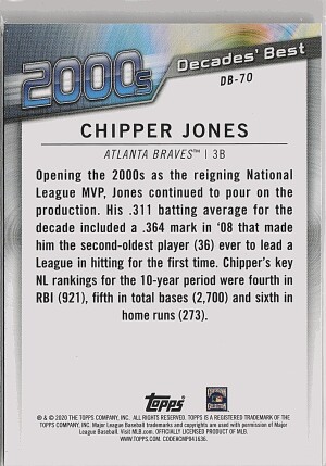2020 Topps Update #DB-70 Chipper Jones Decades' Best