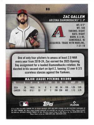 2025 Stadium Club Lime Green #80 Zac Gallen - Arizona Diamondbacks