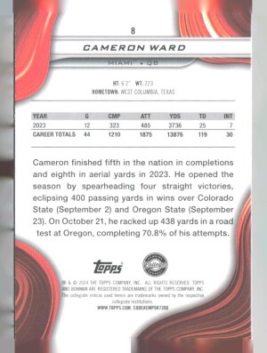 2024 Bowman University Best #8 Cameron Ward