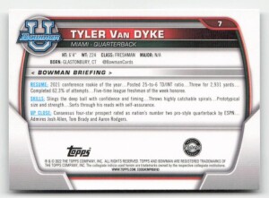 2022 Bowman University Chrome #7 Tyler Van Dyke