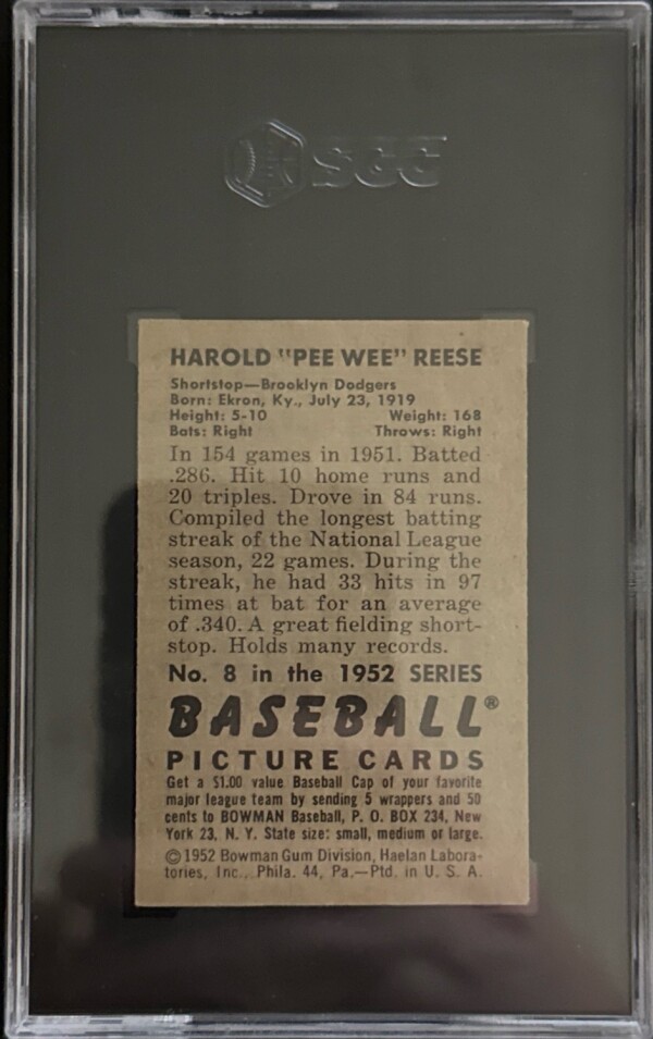1952 Bowman #8 Pee Wee Reese SGC 4