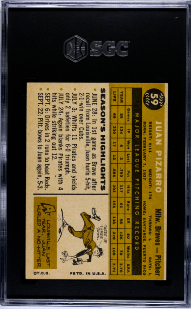 Juan Pizarro 1960 Topps Baseball Card. Graded SGC 5.5.