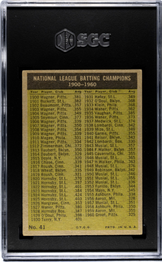 1961 Topps N.L. Batting Leaders SGC 4