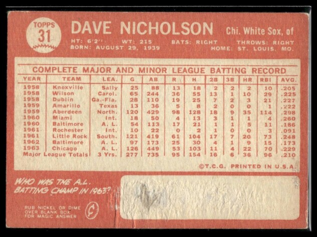 1964 Topps Dave Nicholson #31