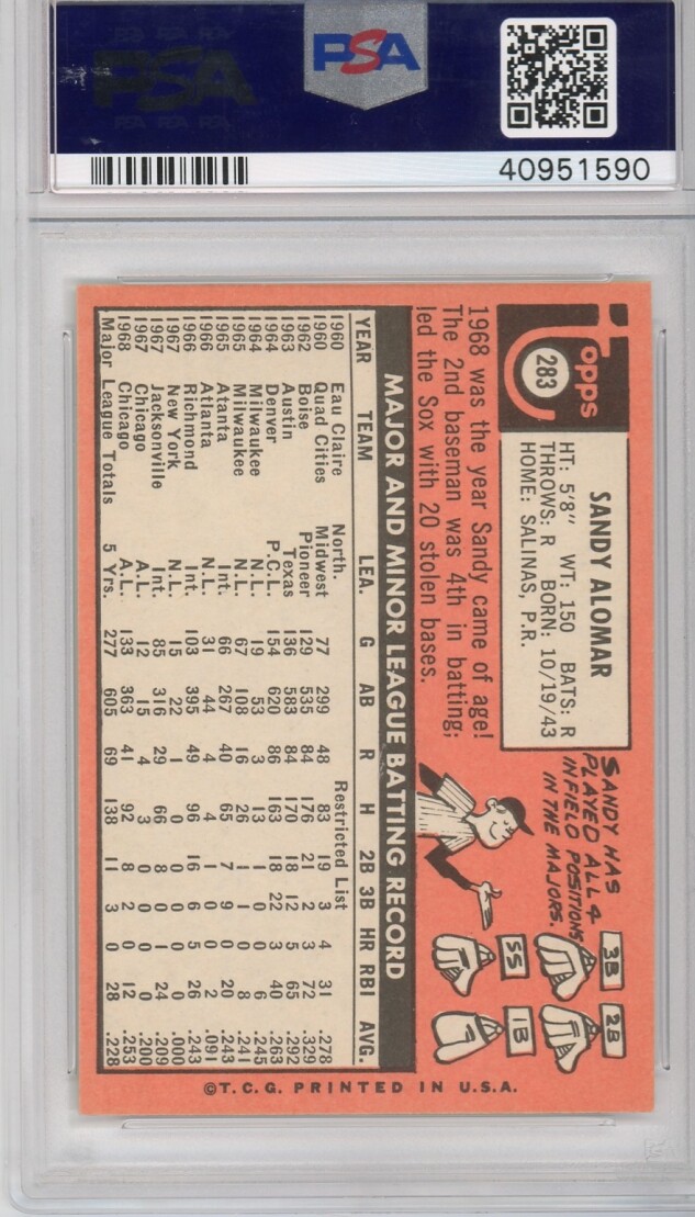 You are purchasing a 1969 Topps Sandy Alomar #283 Mint Vintage PSA 9. Thank you for looking.