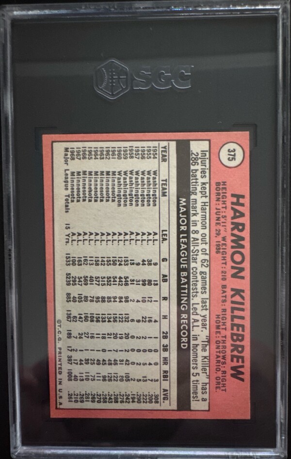 1969 Topps Harmon Killebrew #365 SGC 6