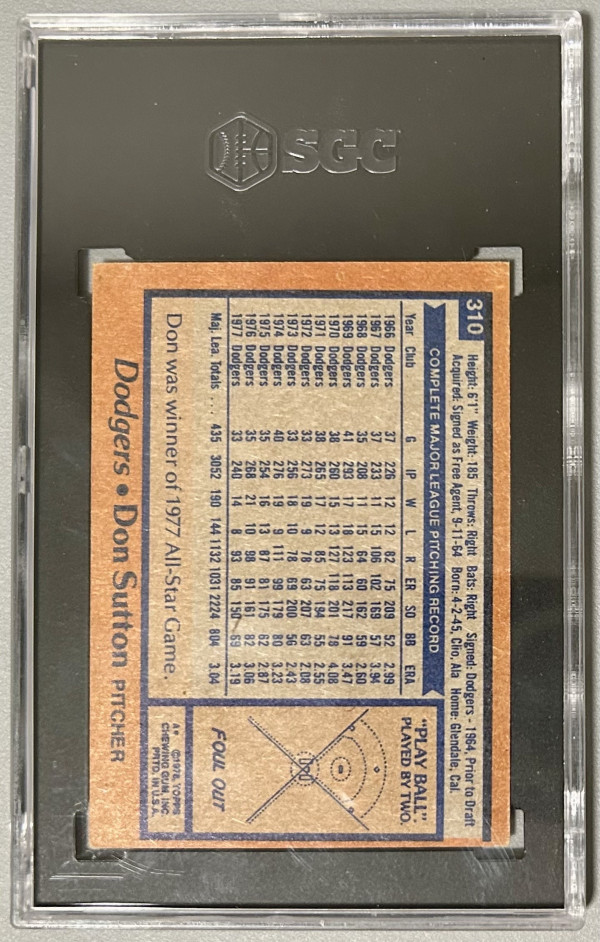 1978 TOPPS DON SUTTON #310 Los Angeles Dodgers SGC 4