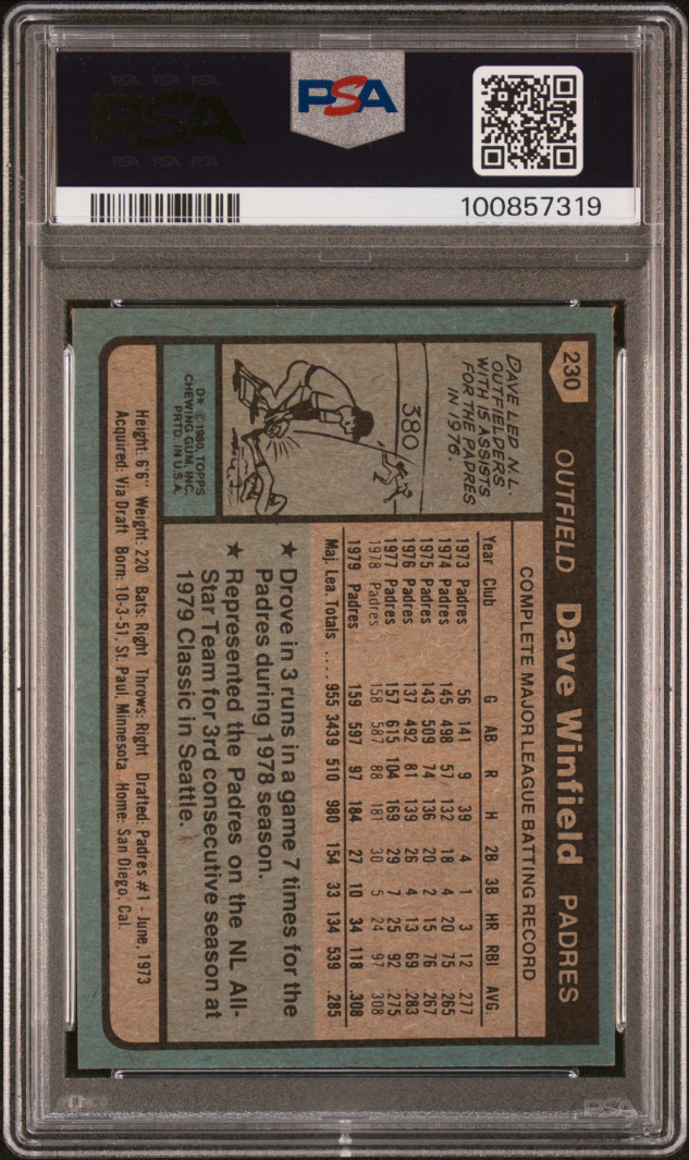1980 Topps #230!Dave Winfield PSA 7 HOF