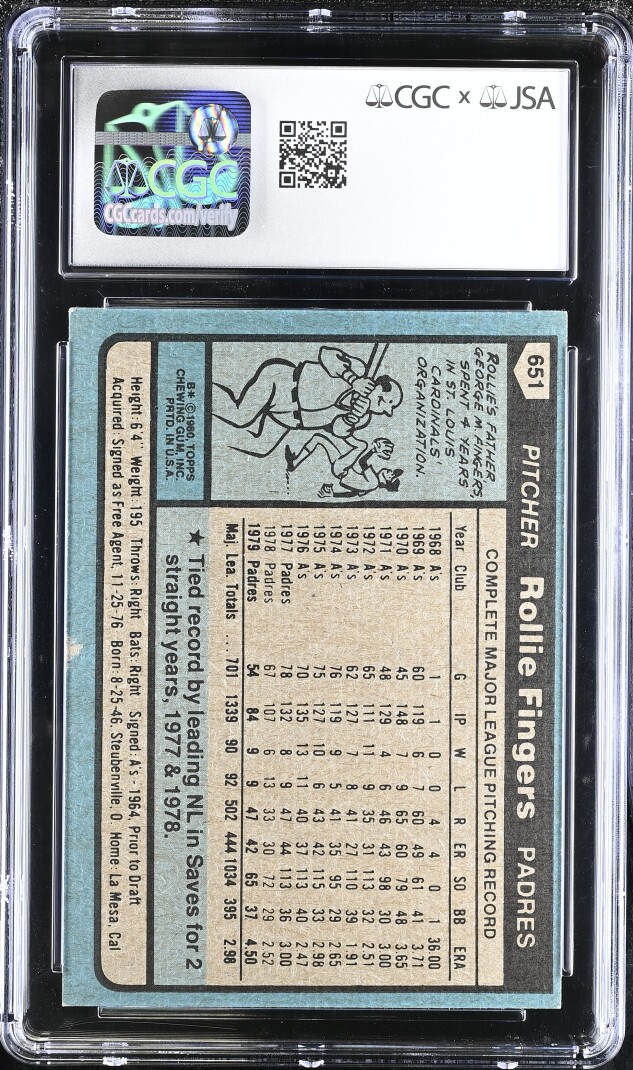 1980 Topps #651 Rollie Fingers Auto CGC