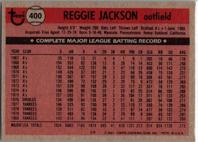 1981 Topps #400 Reggie Jackson