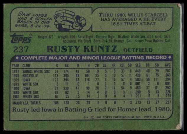 1982 Topps Rusty Kuntz #237