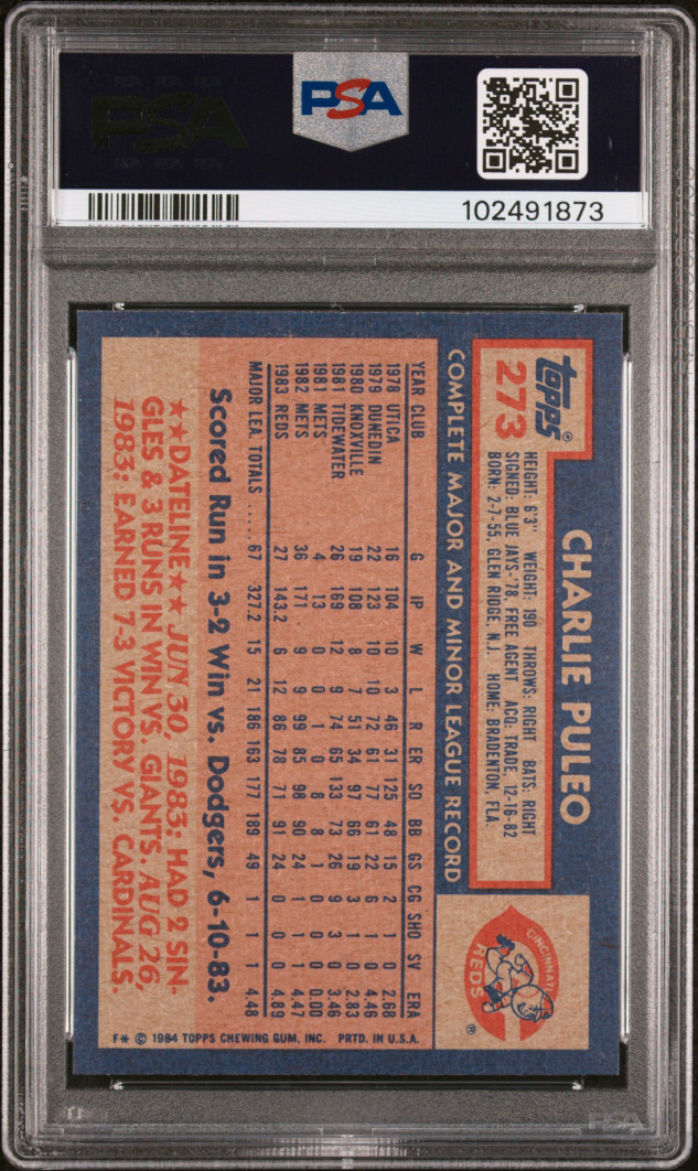 You are purchasing a { 1984 Topps Charlie Puleo #273 PSA 9. You will receive the exact item in the photographs. Thank you for looking.