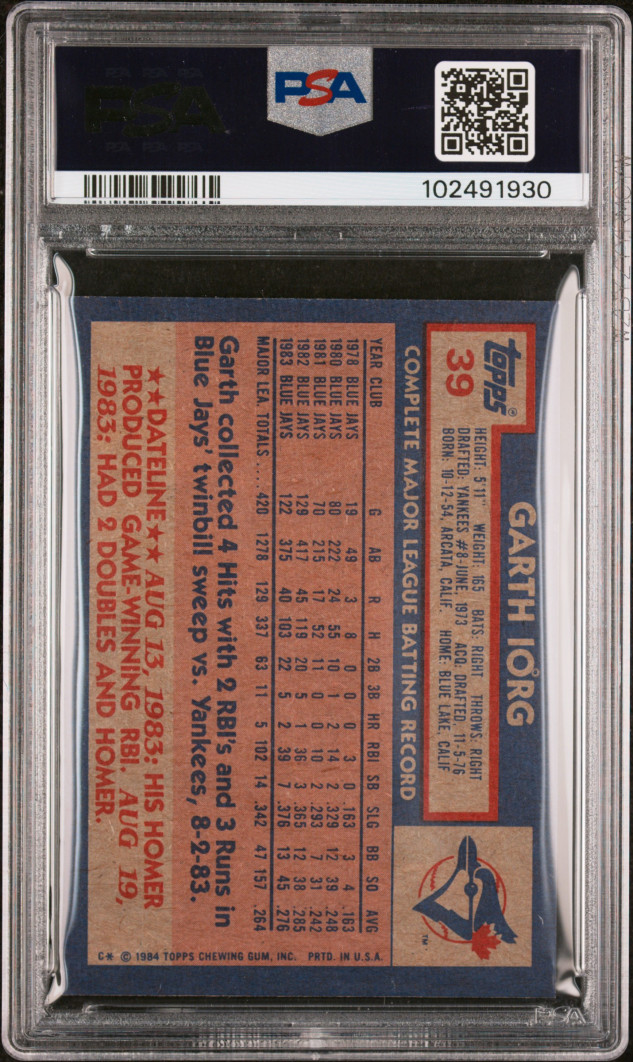 You are purchasing a { 1984 Topps Garth Iorg #39 PSA 8. You will receive the exact item in the photographs. Thank you for looking.