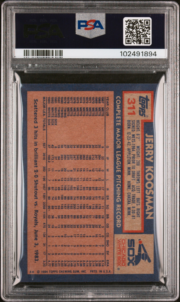 You are purchasing a { 1984 Topps Jerry Koosman #311 PSA 9. You will receive the exact item in the photographs. Thank you for looking.