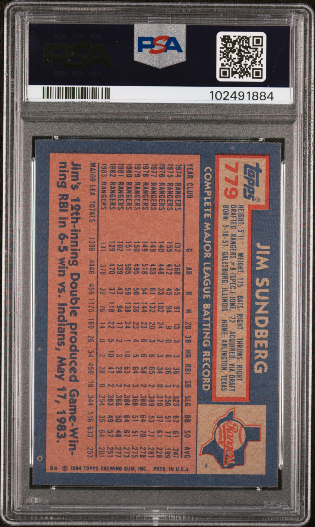 You are purchasing a { 1984 Topps Jim Sundberg #779 PSA 9. You will receive the exact item in the photographs. Thank you for looking.