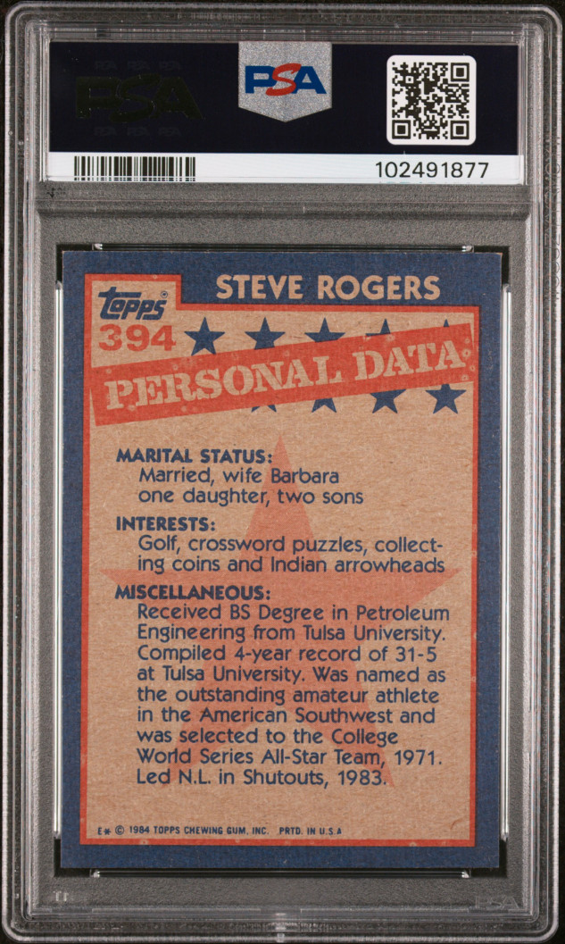 1984 Topps Steve Rogers #394 PSA 8