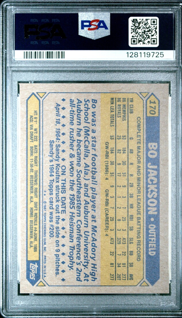 1987 Topps Bo Jackson Future Stars PSA 8 Rookie
