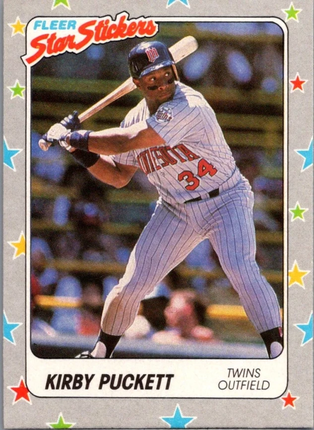 This is a nice example of a 1988 Fleer Star Stickers #45 Kirby Puckett