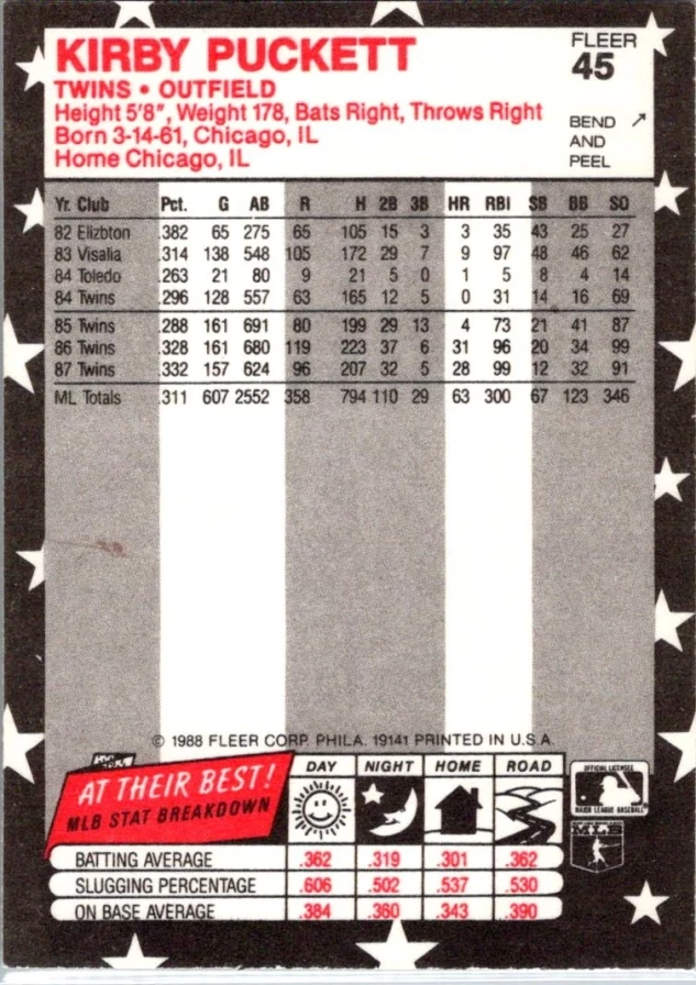 In 1988 Kirby Puckett played for the Minnesota Twins.